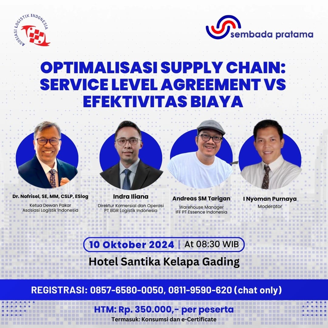 | Judul Event | : | [SEMINAR] Optimalisasi Supply Chain: Service Level Agreement vs Efektivitas Biaya - 101024 |