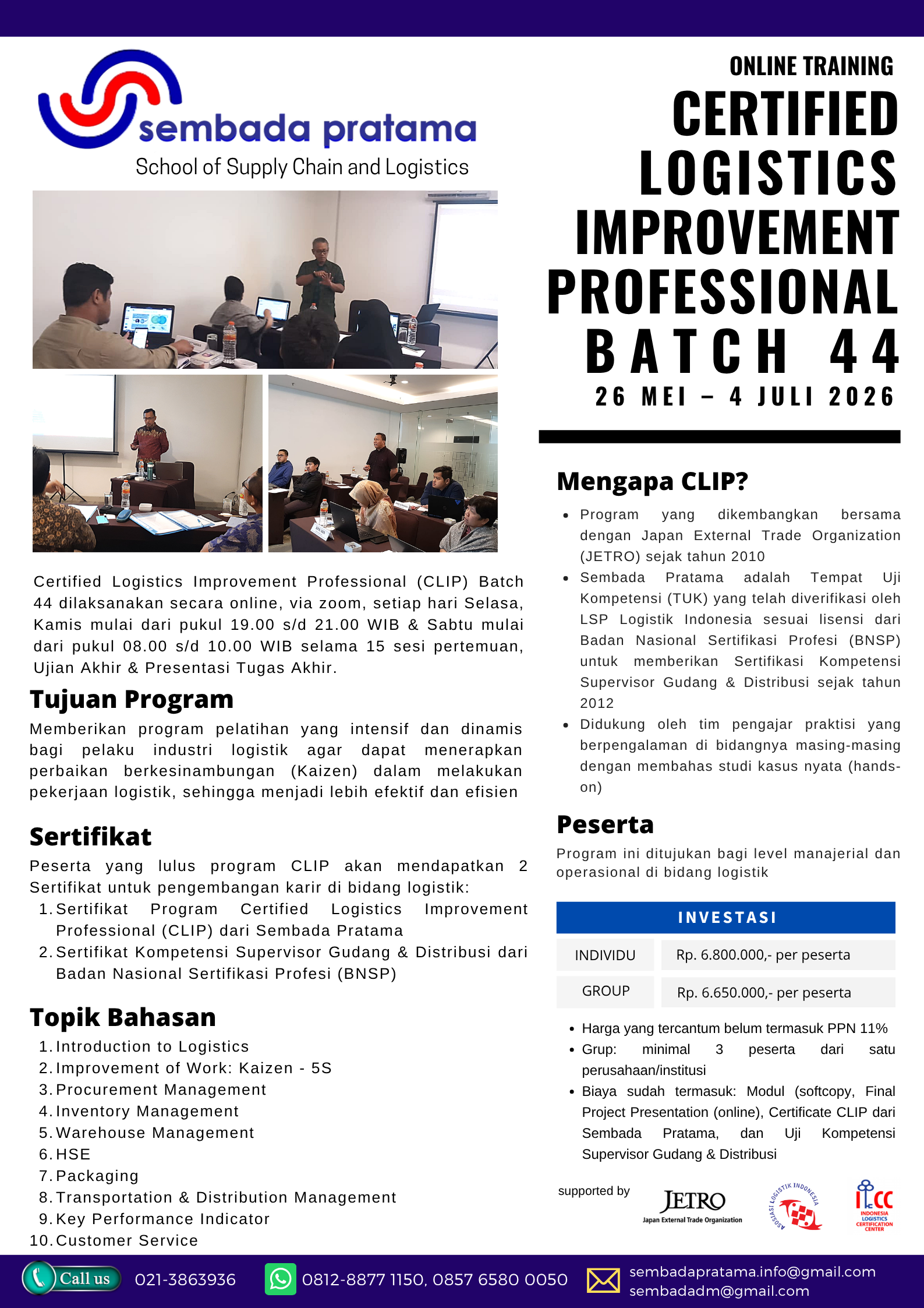 | Judul Event | : | [E-Training & Certification] Certified Logistics Improvement Professional (CLIP Batch 44) - 26 Mei 2026 |